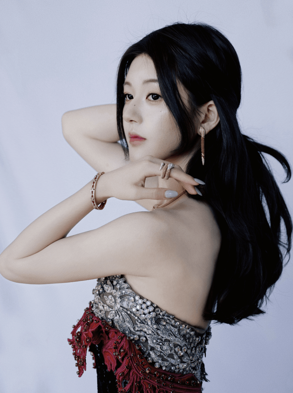 赵露思单手轻抵颈侧,手链与长款耳饰添满精致感。