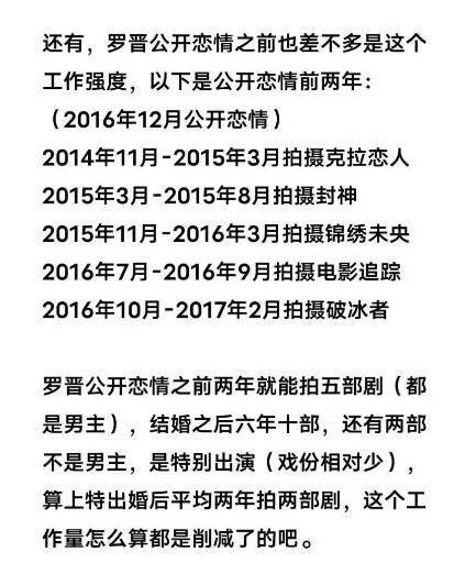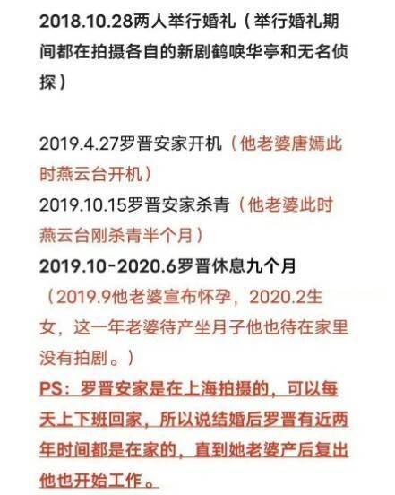 根据爆料来看,罗晋婚前曾言自己不扎戏,可婚后却几乎无缝进组。