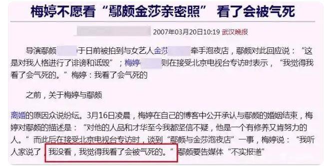 梅婷面对记者的询问事后看过金莎与鄢颇的照片表示:“没看,看了会气死。”