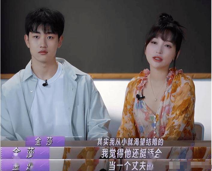 在节目中,金莎也一直以姐姐的姿态安抚男友,被戏称带孩子。