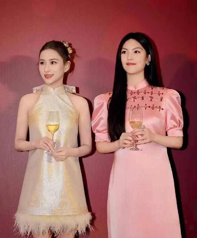 王诗龄身穿粉色新中式礼服。