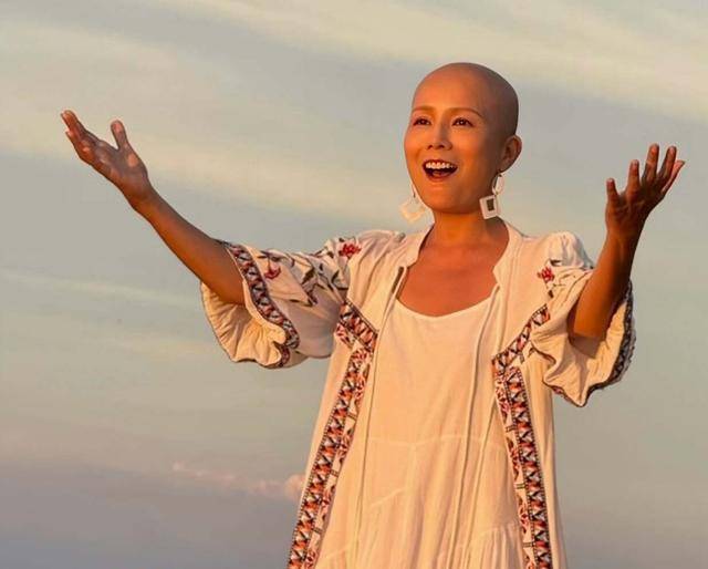 现在,虽说化疗之后,头发确实掉光了。但吴文忻反而不在乎了,还经常以光头造型示人。