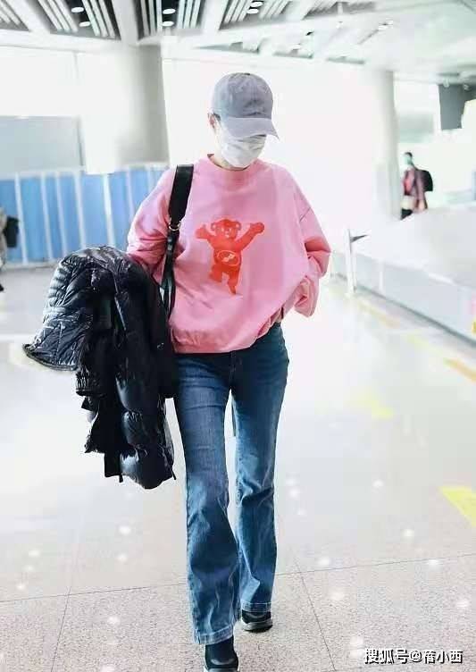 小圆领卫衣有人爱有人不喜欢,因为部分女性觉得领口露肤度太低,会有种束缚感,而且穿脱时不太方便。如果化了妆,穿小领卫衣可能会把妆弄花;领口大些的卫衣就很方便了。粉色卫衣除了具有减龄效果外,胸前的小熊图案也衬得人更年轻了,还让穿着者多了份可爱俏皮感。室内温度高的话,可以和刘敏涛一样,将羽绒服拿在手里,等出去时再穿上。