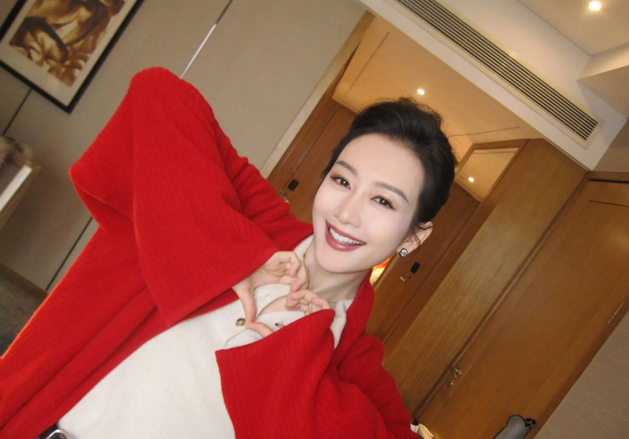 此前,王鸥晒比心美照,笑容甜美。