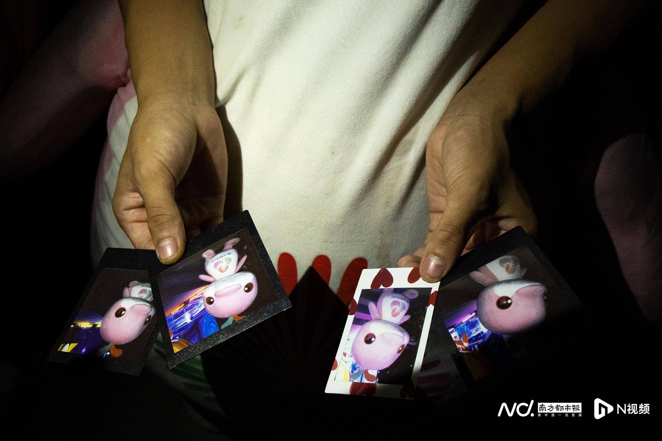 11月20日,广州国际灯光节,“乐融融”扮演者郭志忠拿着拍立得照片爱不释手。