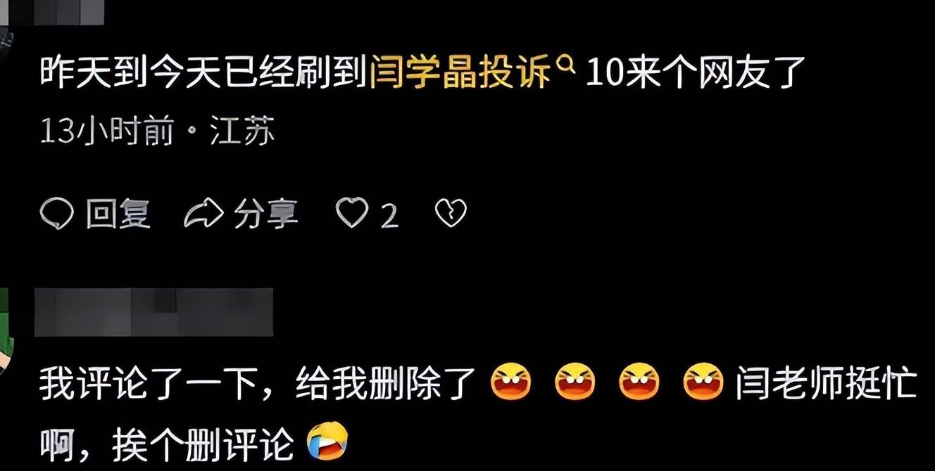 面对网友铺天盖地的批评,闫学晶不仅关评论区,还开始“删评论”“投诉”等活动,属实让一众粉丝凉了心,