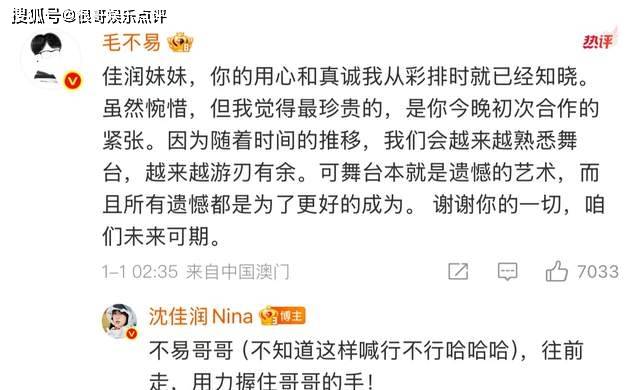 而毛不易的暖心回应更让这场致歉成为双向奔赴的温情时刻,他在评论区写道:“你的用心和真诚我从彩排时就已经知晓,虽然惋惜,但很珍贵,所有遗憾都是为了更好的成为”,这番鼓励让沈佳润感动回应:“不易哥哥,往前走,用力握住哥哥的手”。一歉一慰之间,舞台失误的尴尬被人与人之间的善意取代,也让公众看到了年轻艺人应有的谦逊与前辈的格局。