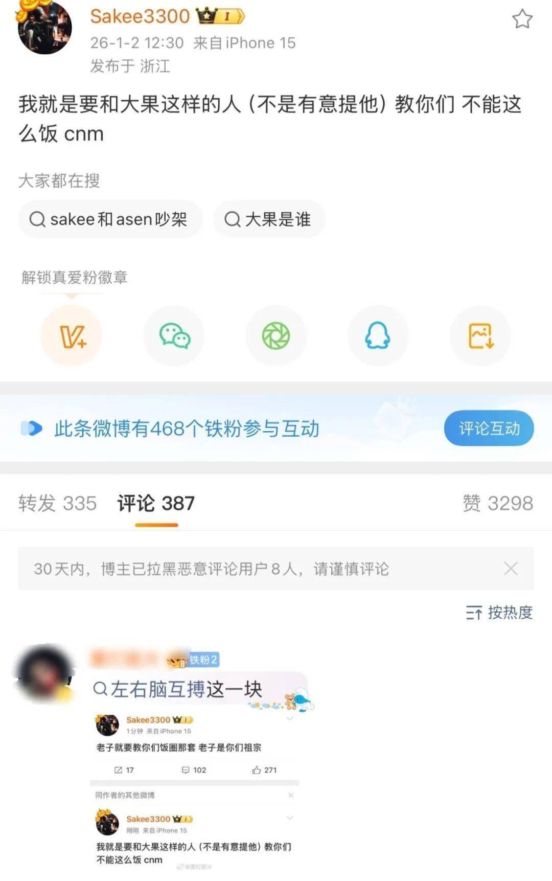 结果今天,Sakee并没有消停,反而彻底疯狂,连续回怼网友!