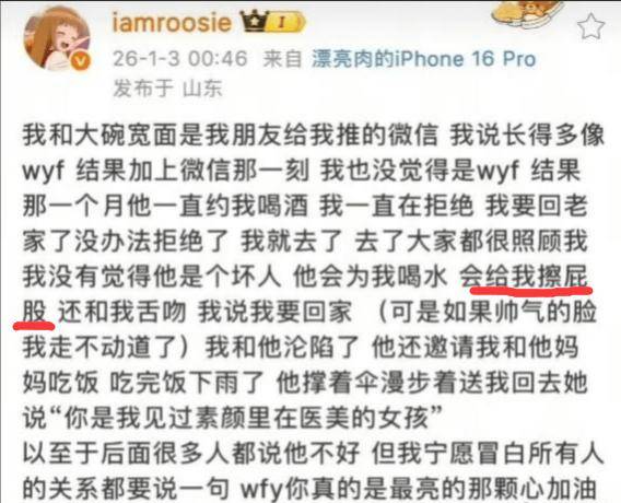 司晓迪爆料吴签是“舔”的一方,夸张到给女方擦屁股的程度。更让吴签粉丝难以接受的是,司晓迪说吴签是自己的舔狗就算了,还爆了他床上只是“npc”的水平( 要说众男星船上运动排名被否了,司晓迪却实实在在说了一句“都很短”)。