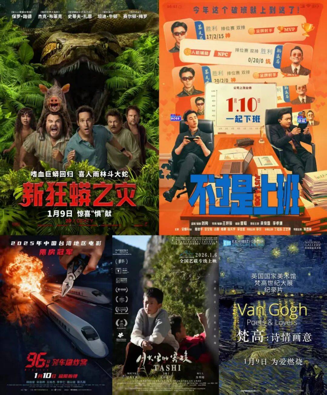 元旦档后、春节档前是影市的传统冷档期,本周新片数量不少,但预计都不会有多大票房体量。索尼出品的重启动物惊悚片《新狂蟒之灾》、光线出品的职场喜剧《不过是上班》、台湾大制作火车题材灾难动作片《96分钟:列车爆炸案》三部商业片将公映,万玛才旦监制的藏语文艺片《月光里的男孩》、艺术纪录片《梵高:诗情画意》也将登陆院线。