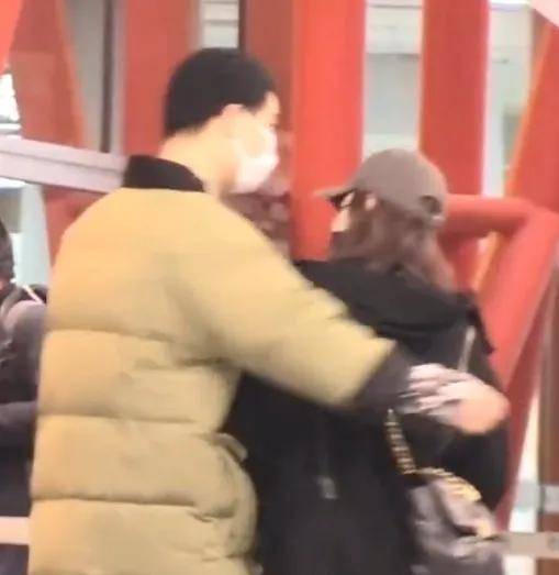 其实早在去年1月份的时候,两个人就被拍到了在机场搂抱的画面。