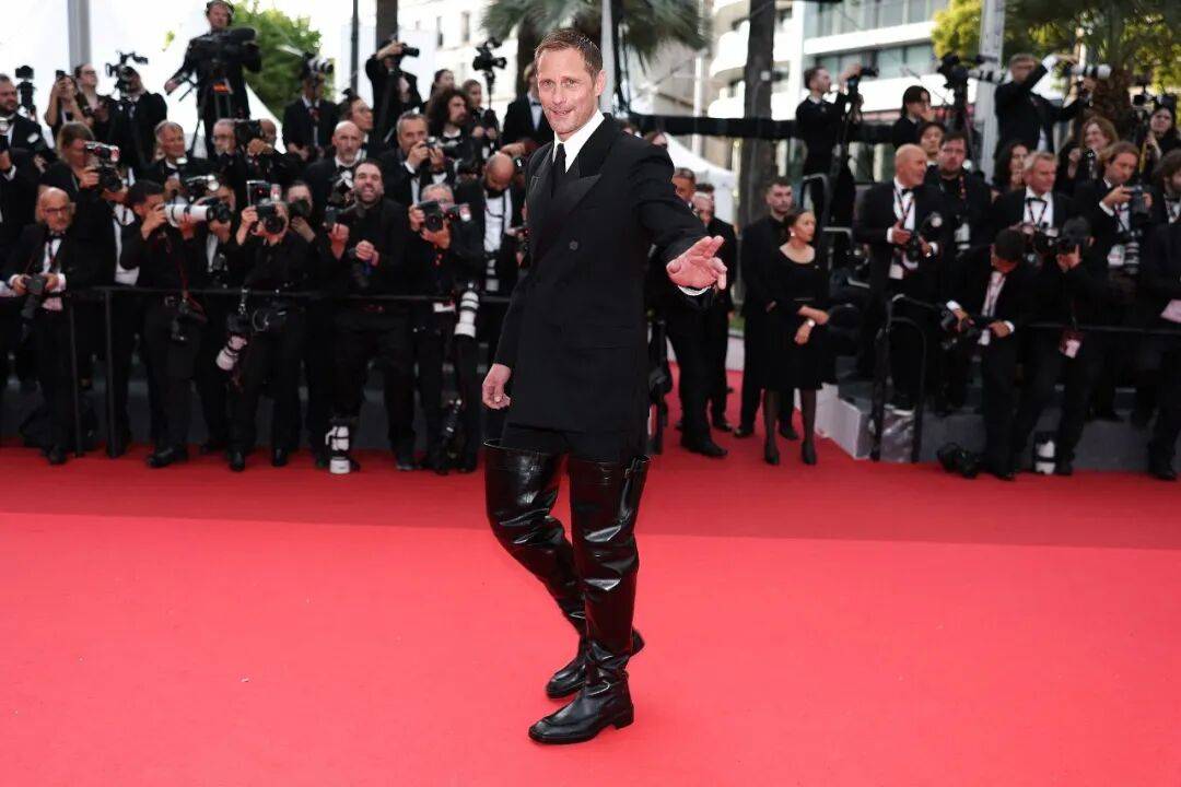 戛纳红毯上穿着皮靴的亚历山大