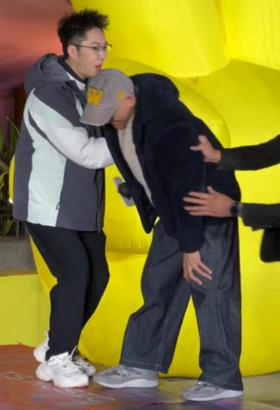 在户外活动时,卢冠廷的情况看着更糟,卢冠廷在上台时疑似膝盖突然疼痛,脚步不稳险些跌倒,一旁的工作人员见状,赶紧上前搀扶。