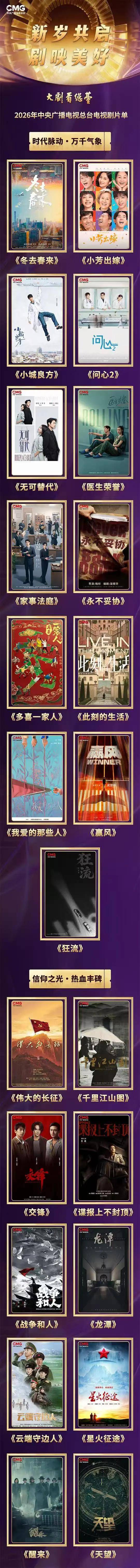这份兼具厚度与新意的片单,既是总台内容实力的高调亮相,其实也显现出“大剧看总台”未来的发展图景:向广覆盖,触达全年龄段受众的不同喜好;向上深耕,攀登思想与艺术的双重高峰;向新奋进,激活精品剧集的创新活力与时代价值。立足“十五五”规划开局之年,总台积极响应“激发全民族文化创新创造活力,繁荣发展社会主义文化”的战略任务,以大剧之力为新时代文化强国建设注入旺盛动能。
