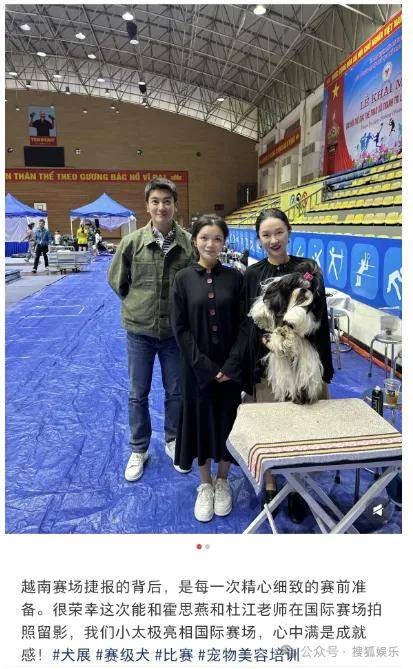 实际上,霍思燕换了赛道,她除了在家带孩子外,重心还有一个,那就是培养小狗,并带着小狗去各地参赛,成为了一名牵犬师。