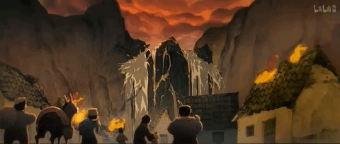 巨石被劈开,洪水涌出扑灭大火,拯救了村庄。