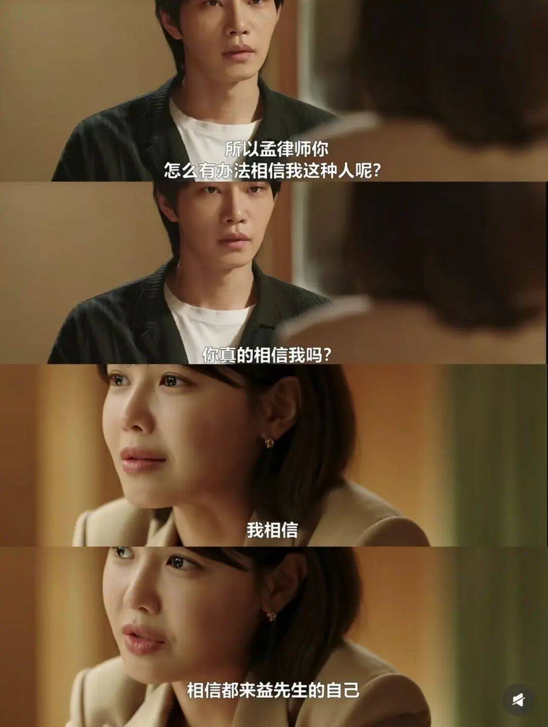 孟世娜并不相信,至于不相信的原因是他“仅粉丝可见”的演技,孟世娜可是都来益十几年的真爱粉哎,她看过男主主演的电视剧,当然知道男主的演技到底有多差,所以都来益在警察局表现出来的一切当然不是演的,他确实不是凶手。