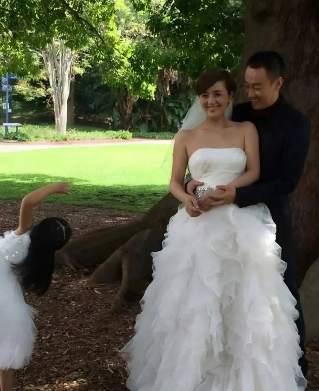 他们的婚礼很简单,朱媛媛穿着白色抹胸婚纱,辛柏青在背后环抱着她,满眼都是幸福。