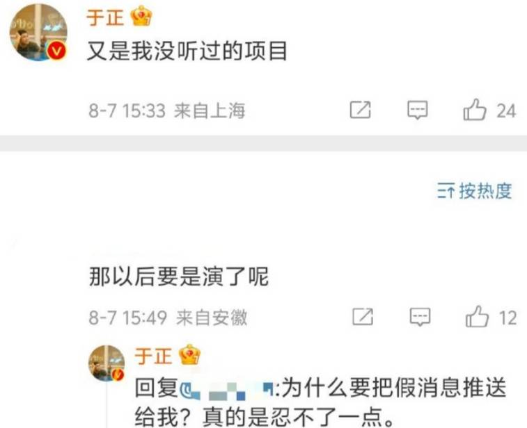 搜狐娱乐讯 近日,网传白鹿将于11月进组拍摄《骄阳似我》,引发热议!对此,于正否认道:“又是我没听过的项目。为什么要把假消息推送给我?真的是忍不了一点。”