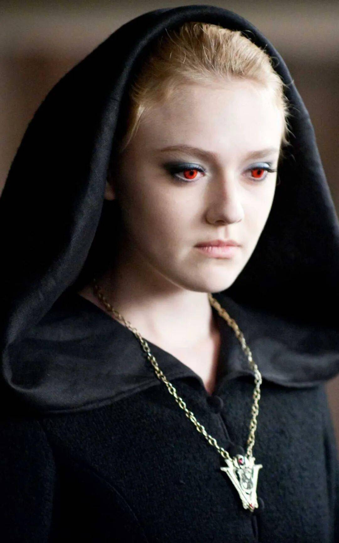 其他几位主演,比较活跃的有饰演沃尔图里吸血鬼家族里简的达科塔·范宁。