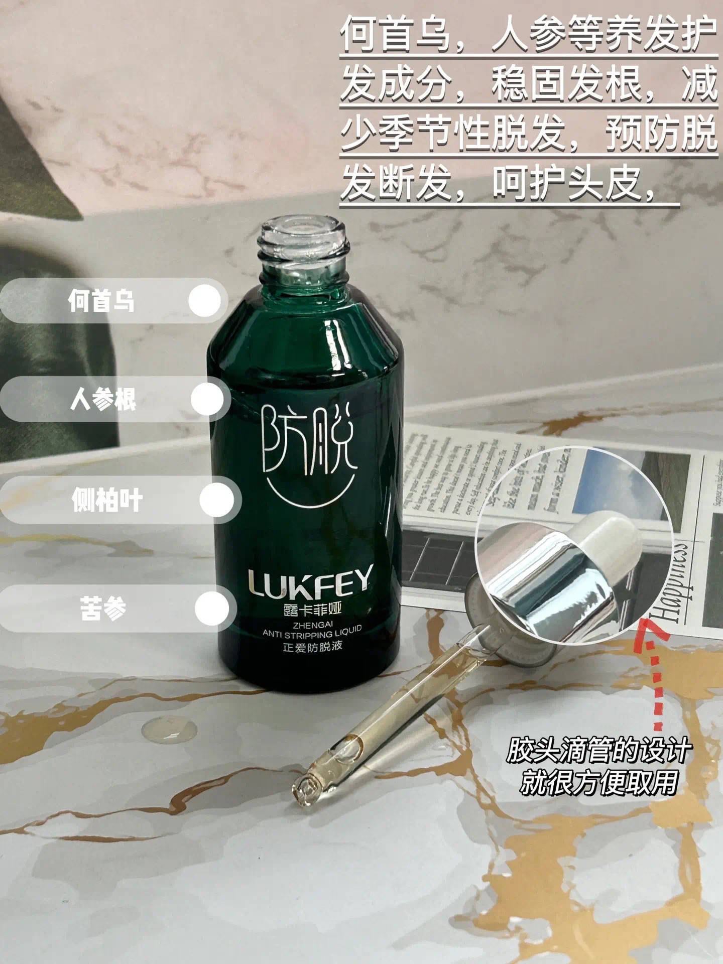 选育发液看成分就够了,这款融合了多种中草y,如人参、何首乌、当归等,保留其活性成分,形成了一个强大的防脱体系,这些营养物质可以有效滋养头皮,增强毛囊活力,让发根越发粗壮,从而改善脱发。 生发因子:长期使用可促进头发生长,并延长新发的生长周期,使得头发越发浓密强韧。