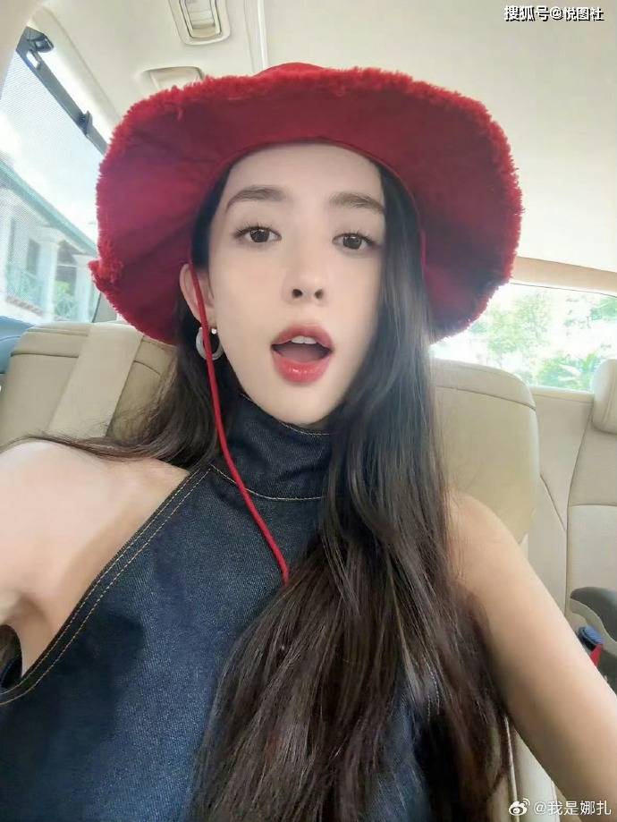 娜扎日常造型太戳!蝴蝶结发夹 + 毛绒红帽,少女感拉满