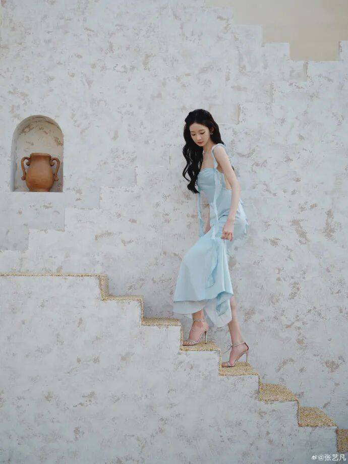 张艺凡的水蓝色的波浪裙彰显曼妙的身材比例,紧身剪裁凸显曲线,冰蓝色材质强化仙气感,绝对美得让人窒息!
