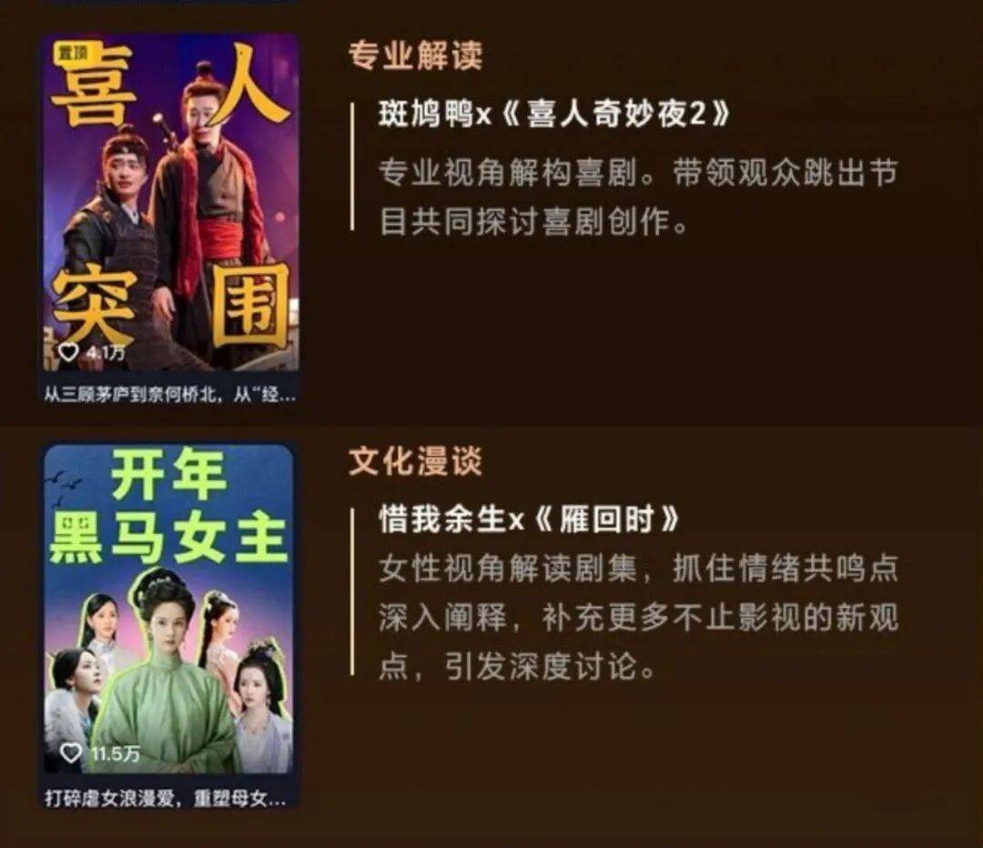 目前,种草安利、专业解读、情绪共鸣、叙事新篇、热点玩梗、文化漫谈等多域细分内容,都在抖音生态中实现深度碰撞、融合生长。特别是在抖音精品化的趋势下,这些内容摒弃了单纯的娱乐属性,成为承载起剧综价值表达与公共讨论的开放空间。