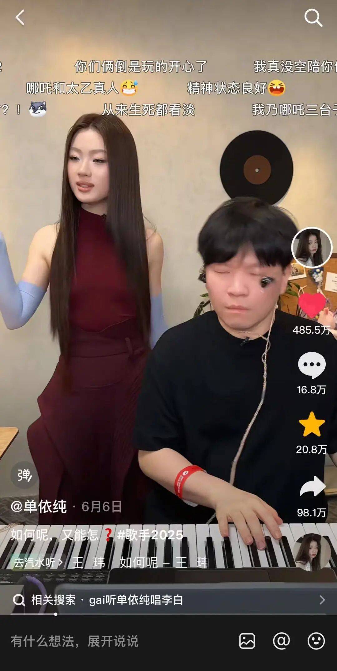 最具记忆点便是《歌手2025》期间,单依纯发布的《李白》演唱视频。一句「如何呢又能怎」瞬间成为全网流行的社交爆梗,用户演绎视频超16万,累计点赞超6470万。此外,白敬亭的「沈腾特效」、「万物皆可技能五子棋」等抽象、搞笑内容,都引发了网友的演绎热潮。