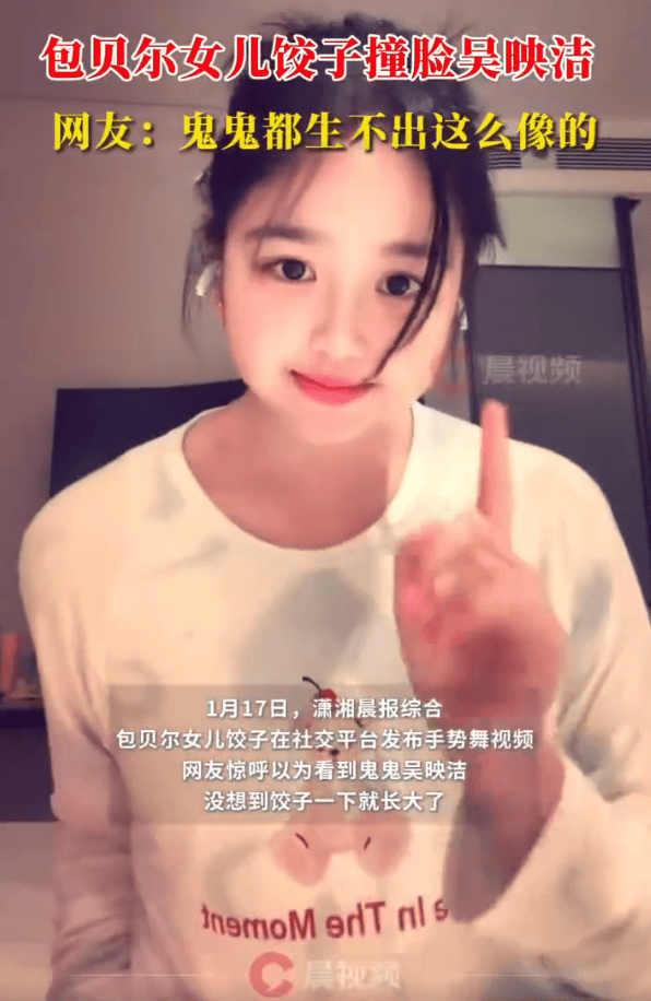 1月17日,潇湘晨报综合。包贝尔女儿饺子在社交平台发布手势舞视频,网友惊呼以为看到“鬼鬼”吴映洁了,没想到饺子一下就长大了。包贝尔与包文婧的女儿包可艾,乳名“饺子”,2015年3月30日出生,2017年参加真人秀节目《妈妈是超人第二季》被公众所熟知。