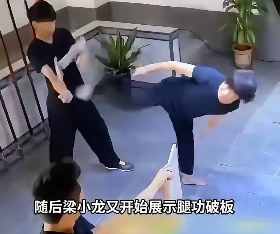 在梁小龙私人社交平台上发布的系列短视频里,就有梁小龙凌厉踢腿、打咏春拳,教后辈的教学视频。