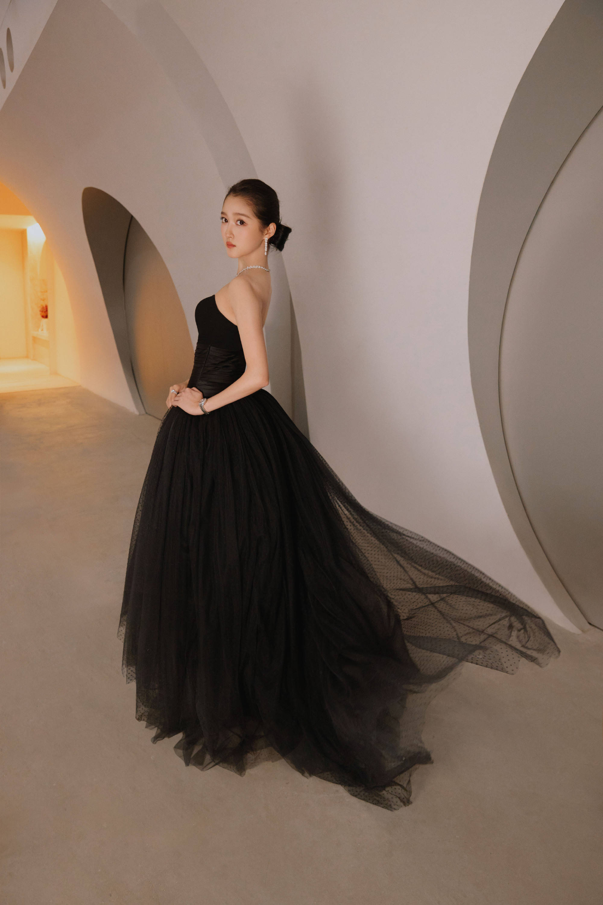 关晓彤侧身回眸,气场优雅大气。