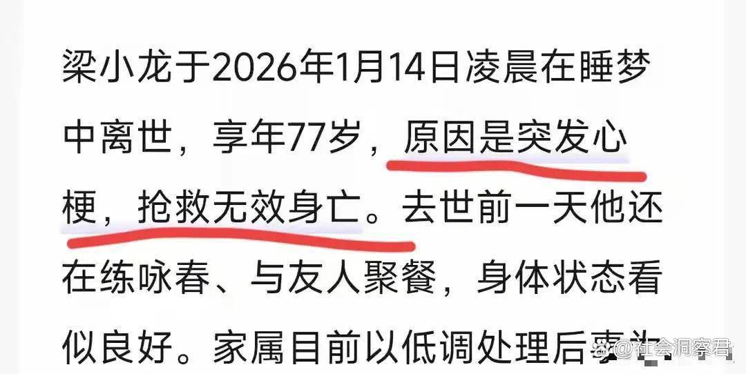 1月18号刷到梁小龙去世的消息,我愣了半天没回过神。就是那个演“陈真”、“火云邪神”的功夫老爷子啊,小时候天天守着电视看他的戏,怎么说没就没了?