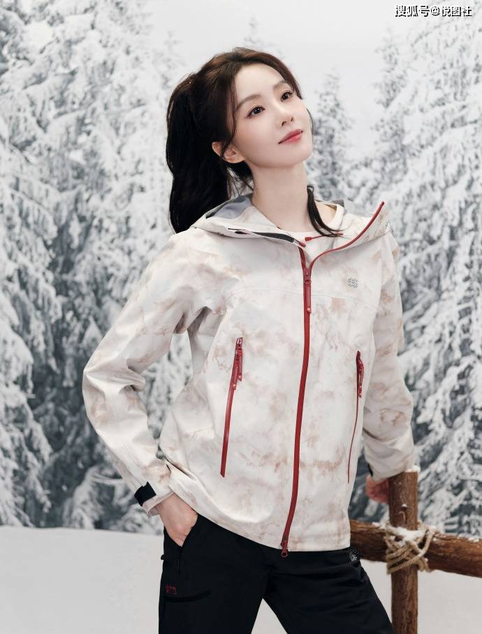 刘诗诗雪境户外风杀疯了!水墨纹冲锋衣 + 高马尾,清甜氛围感直接焊在身上