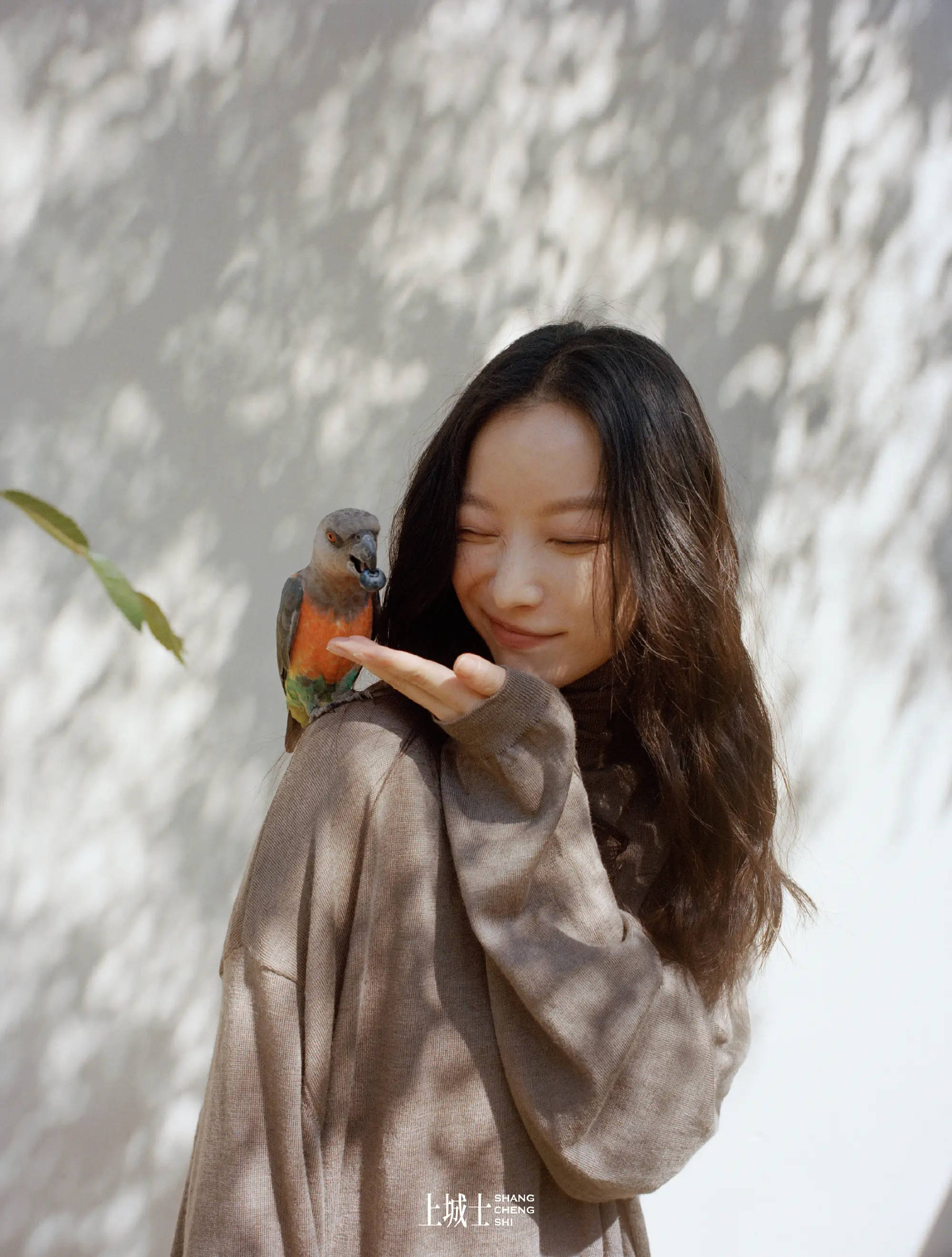倪妮身穿粉色长裙,画面飘逸又自由。
