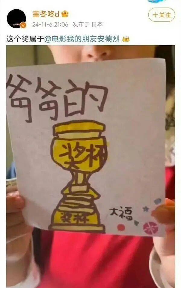 导演董子健发表获奖感言的时候没有感谢摄影师,后来发微博称是“爸爸的奖杯”;