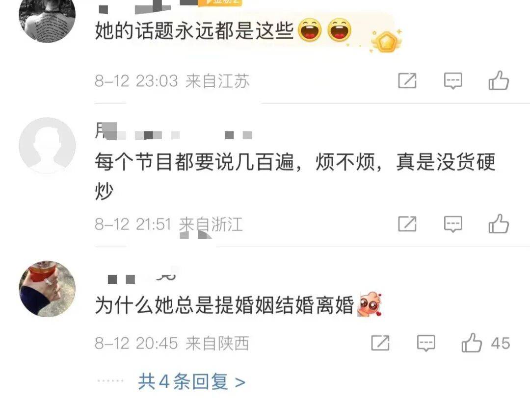 可是随着一个节目一个节目的播出,她提离婚的次数也越来越多,味道也就变了。