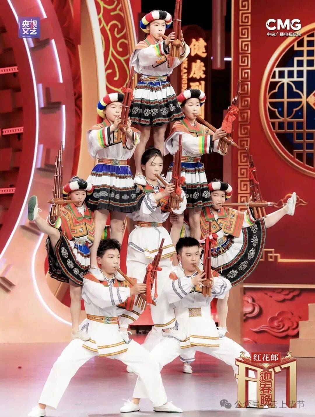 表演者手持芦笙,边吹边舞