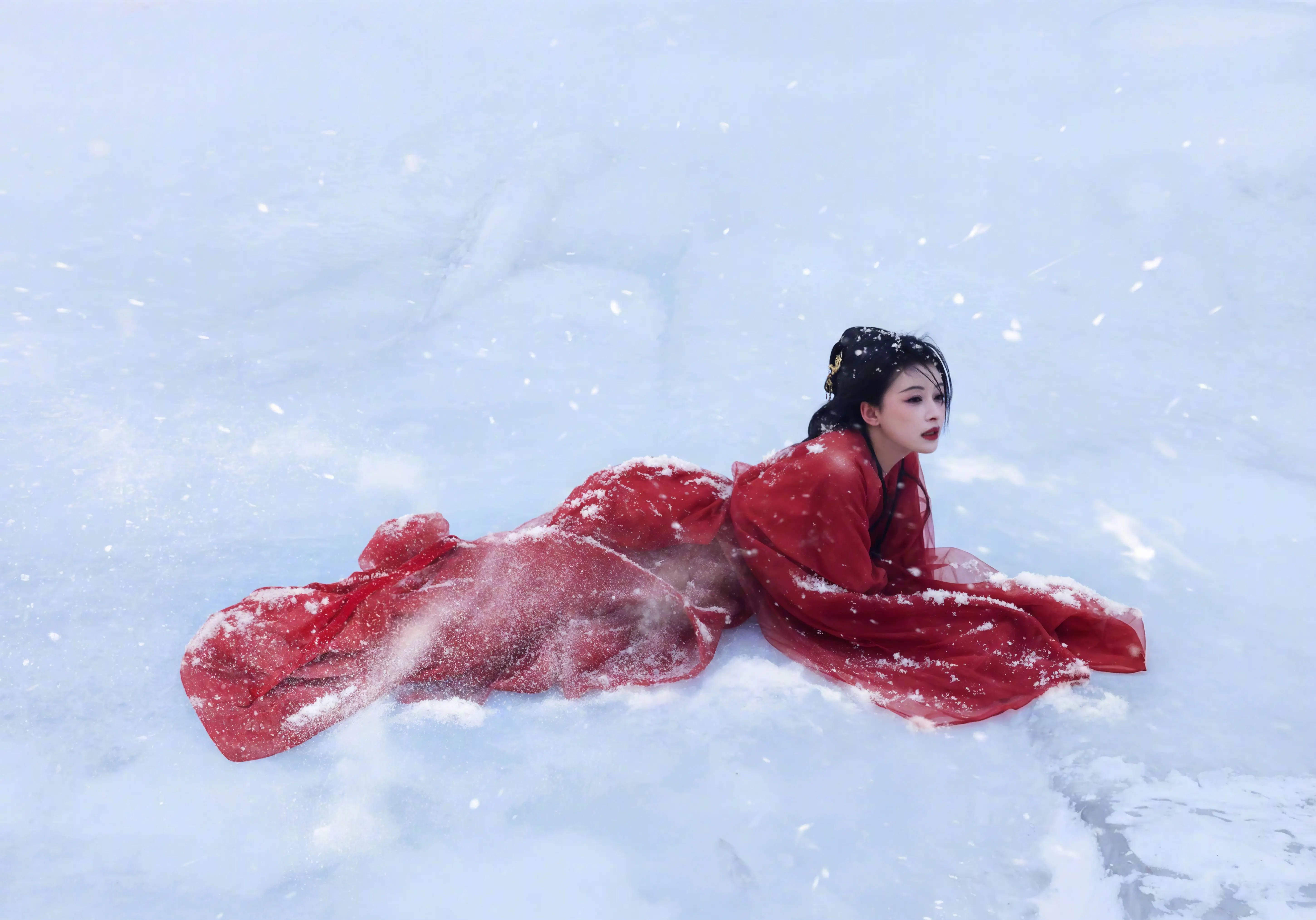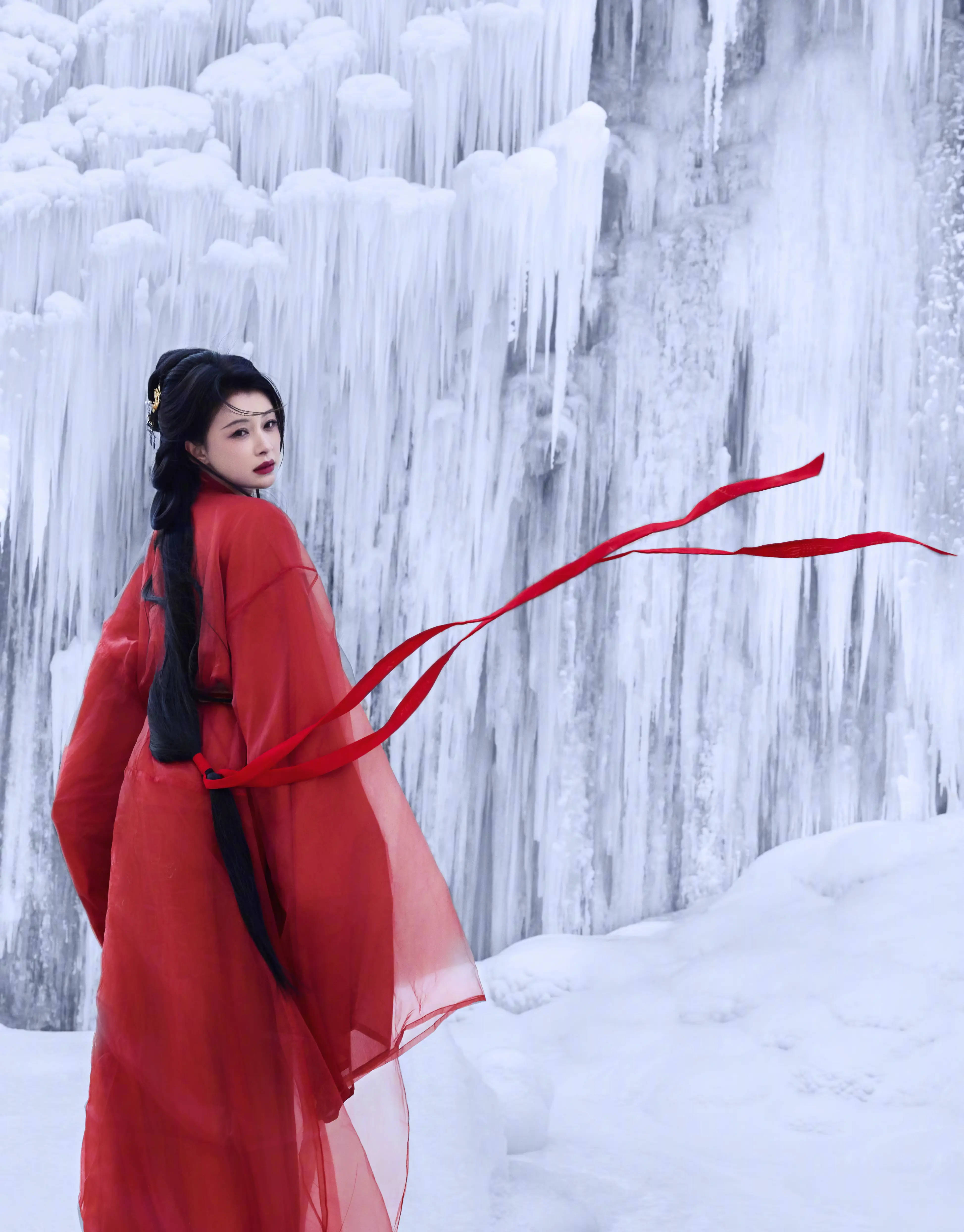 搜狐娱乐讯 1月23日,孙怡公开一组古风写真,照片里的她穿红色襦裙,置身雪地,回眸凝望,破碎感拉满。