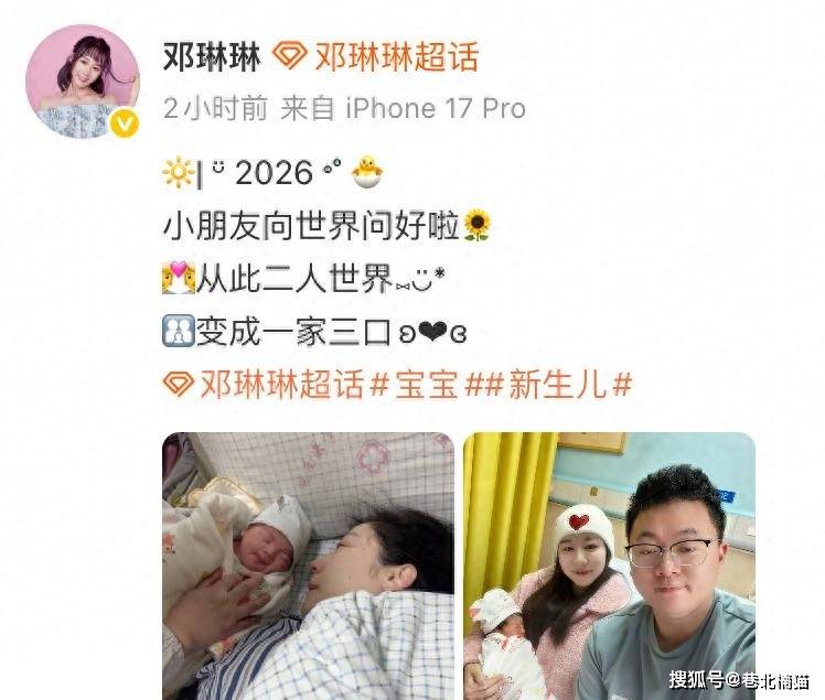 1月23日那天,邓琳琳在社交平台发文庆祝宝宝的到来,说“2026小朋友向世界问好啦”,还提到“从此二人世界变成一家三口”。这话说得挺温馨的,看得出来她对这个新生命充满期待。