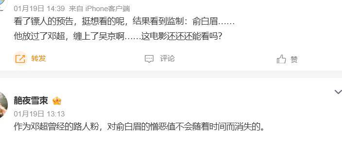 这一举动惹恼了不少《镖人》影迷,觉得这些预测博主是在针对《镖人》,甚至还出现了不少的阴谋论,觉得这举动不只是针对电影,还是针对电影背后资本的。