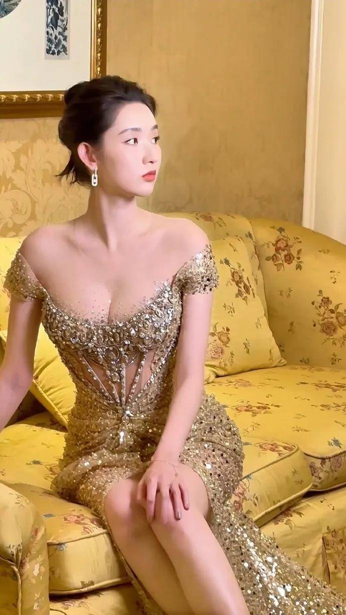 王玉雯身穿一袭鎏金抹胸透视长裙,她坐在沙发上斜视远方,特意露出自己傲人的事业线,一双修长的大美腿很是撩人,魔鬼身材尽显无遗,绝对性感火辣!
