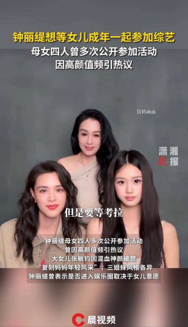 这可不是随口一提的愿望。看看钟丽缇家这阵容,简直就是“颜值天花板”家庭真人秀的顶配。母女四人每次同框,都能轻松引爆话题。大女儿Yasmine(张敏钧)凭借深邃混血神颜,被网友狂赞“完美复刻妈妈年轻时的风采”;二女儿Jaden气质清冷独特,近期虽因膝盖手术在休养,但时尚表现力早已崭露头角;小女儿考拉(张凯琳)才15岁身高就已172cm,甜美笑容完全继承了妈妈的招牌魅力。网友早就按捺不住,直呼这是“中了基因彩票的一家”,合体亮相综艺绝对是“必追清单”第一名。