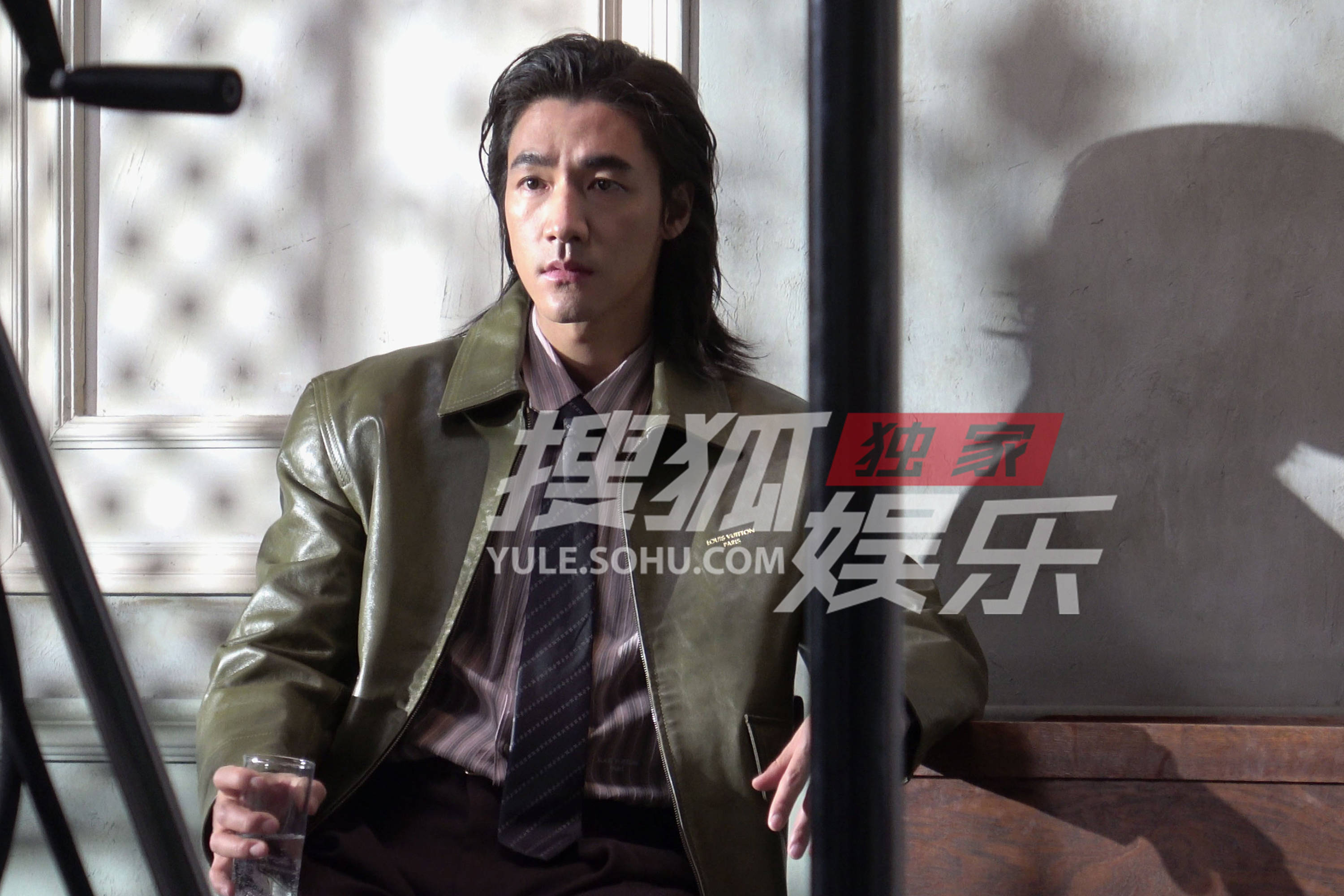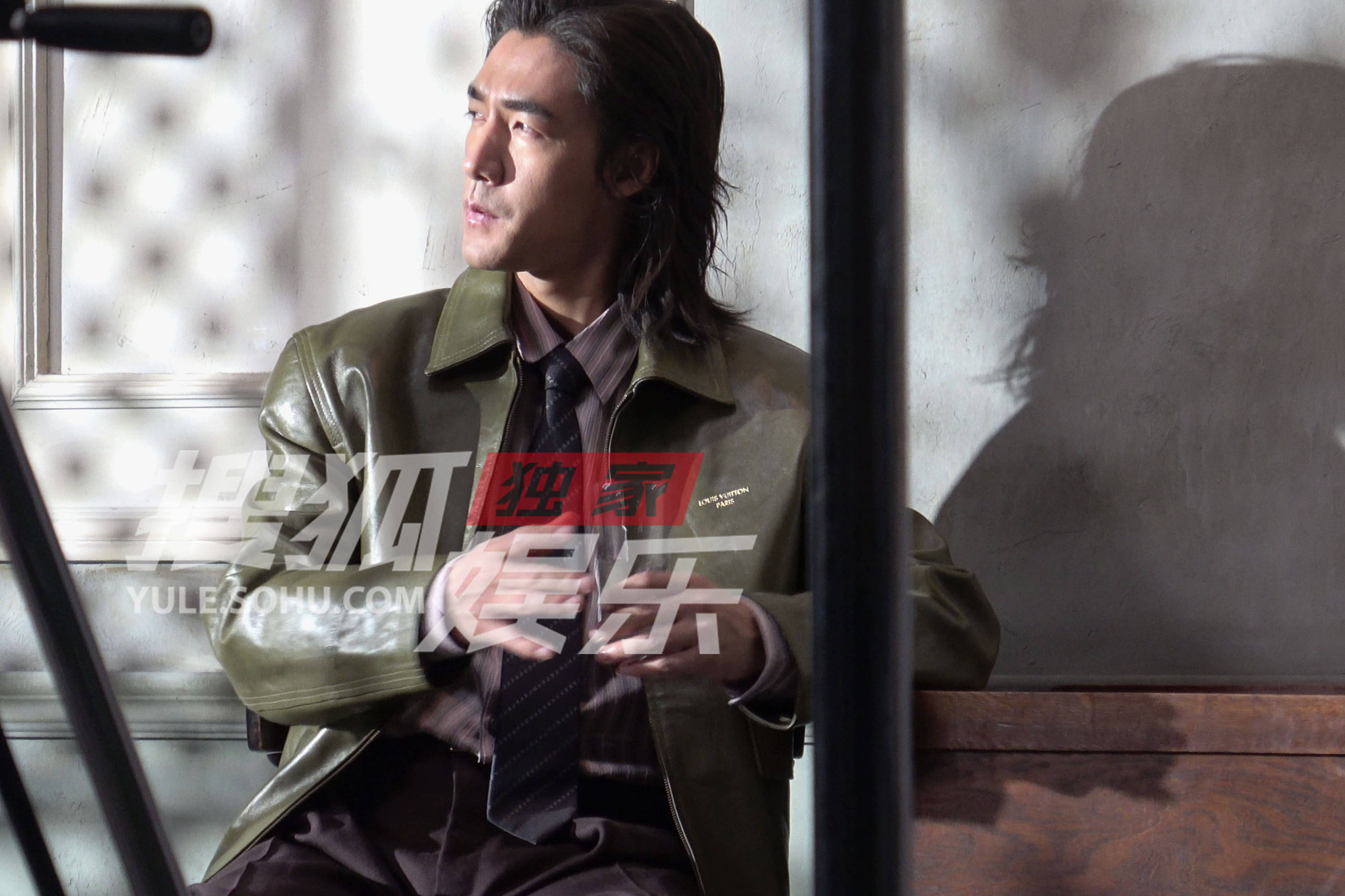 此沙衬衫领带搭配皮夹克,浓厚的商务气息。