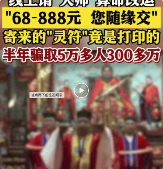 就是这样一群人,靠着68到888的灵符,半年时间骗了5万多人,赚了300多万。