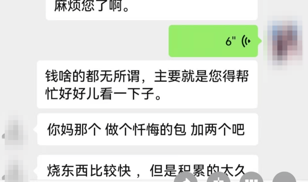 对方回复:“做个忏悔的包吧,再加两炷香消业,免得痛苦。”