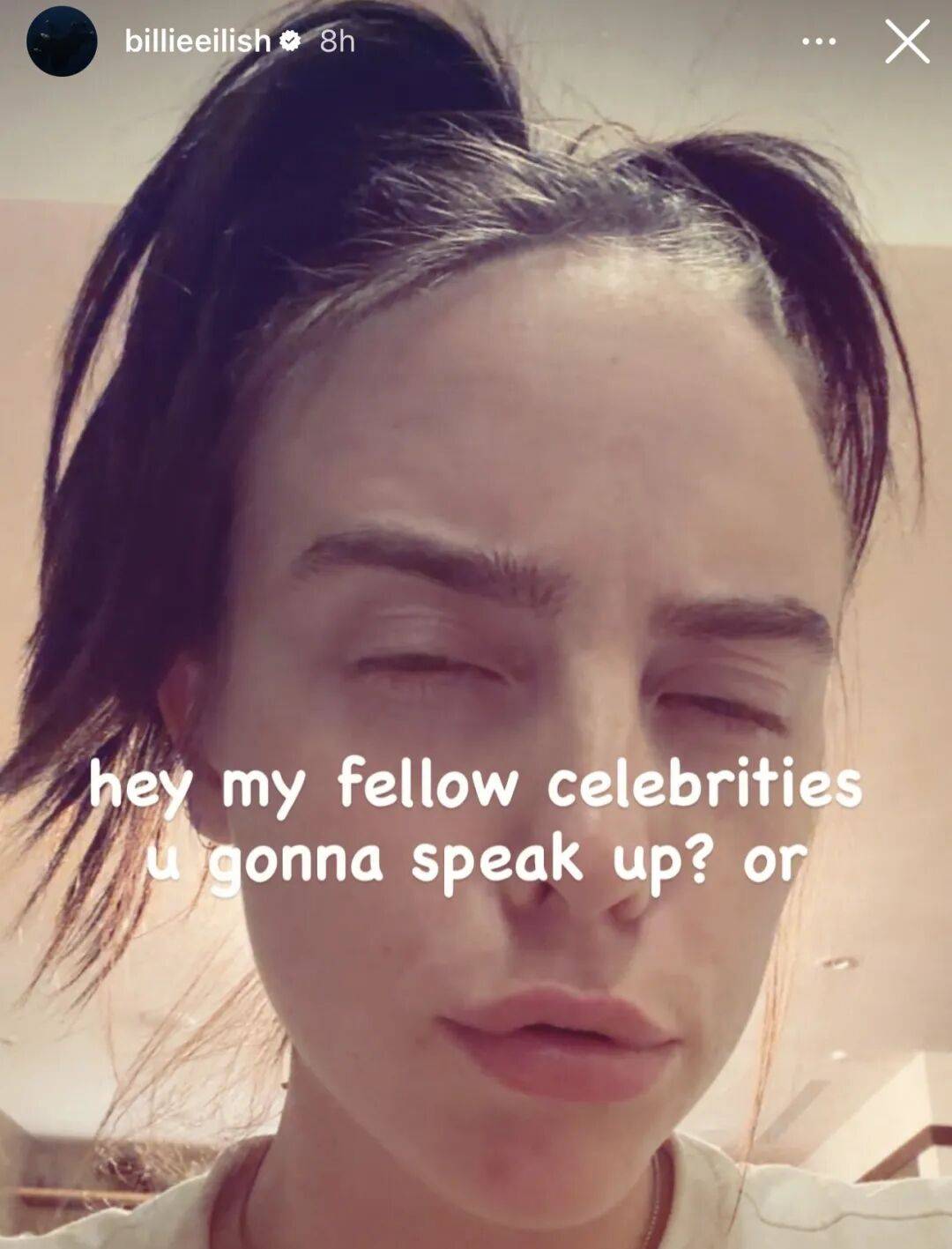 这条动态的语气延续了Billie一贯的风格:不拐弯抹角、不端着、不怕得罪人。她没有@任何人,也没有指名道姓,但“hey my fellow celebrities”已经足够指向性,整个娱乐圈都感受到了那股无声的压力。