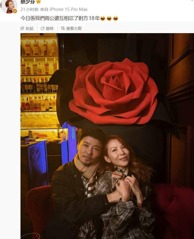 时间飞逝,蔡少芬和张晋的婚姻已经走过了整整18年。