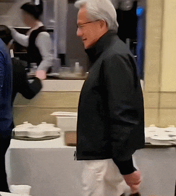 到了北京,黄仁勋这股“泥石流”画风依旧在继续。这次从“买菜大爷”切换成“城市中产”,闪现王府中環聚餐。