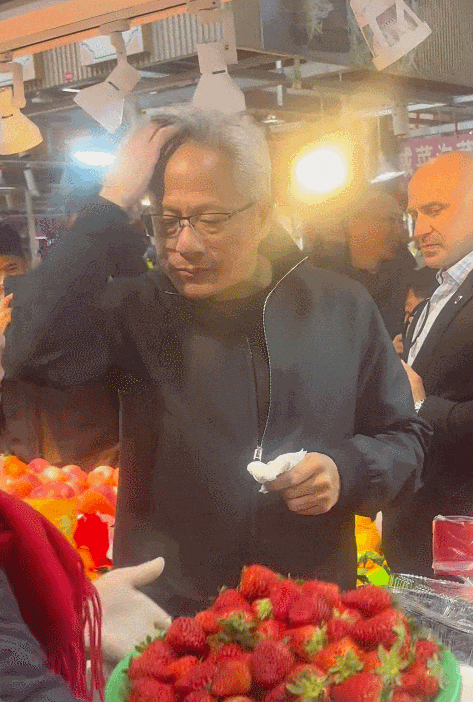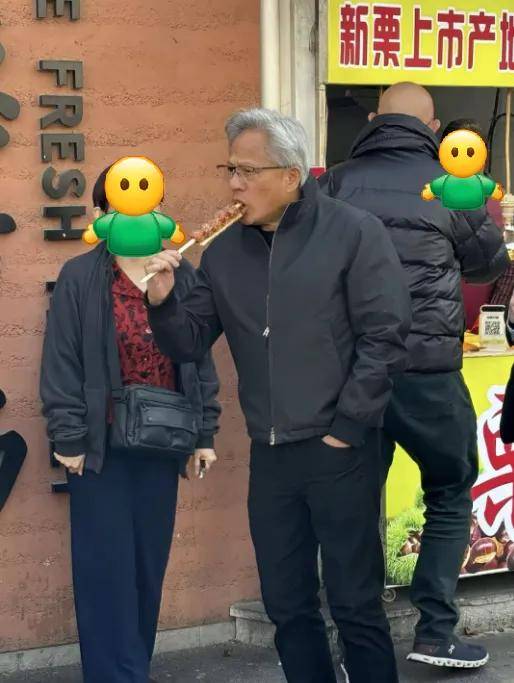 黄仁勋就是“全球夜市野生代言人”,之前在台南就被拍到拎了一兜子小吃,网友评论:我们在买英伟达股票,他在买麻花。穿搭和这次北京上海之行都一毛一样…